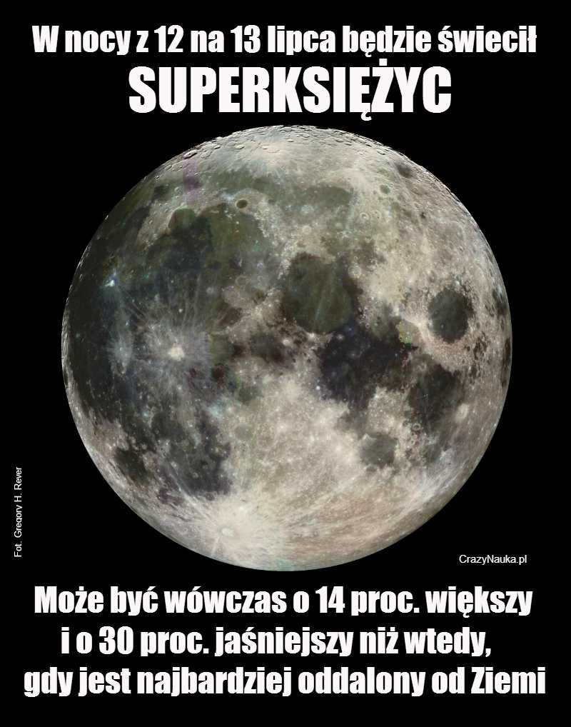 W nocy z 12 na 13 lipca popatrzcie w niebo – jeśli tylko się rozchmurzy, nietrudno będzie zauważyć na nim SUPERKSIĘŻYC. Oznacza to, że nasz naturalny satelita jest obecnie w najbliższym nas punkcie podczas swojej wędrówki wokół Ziemi.
