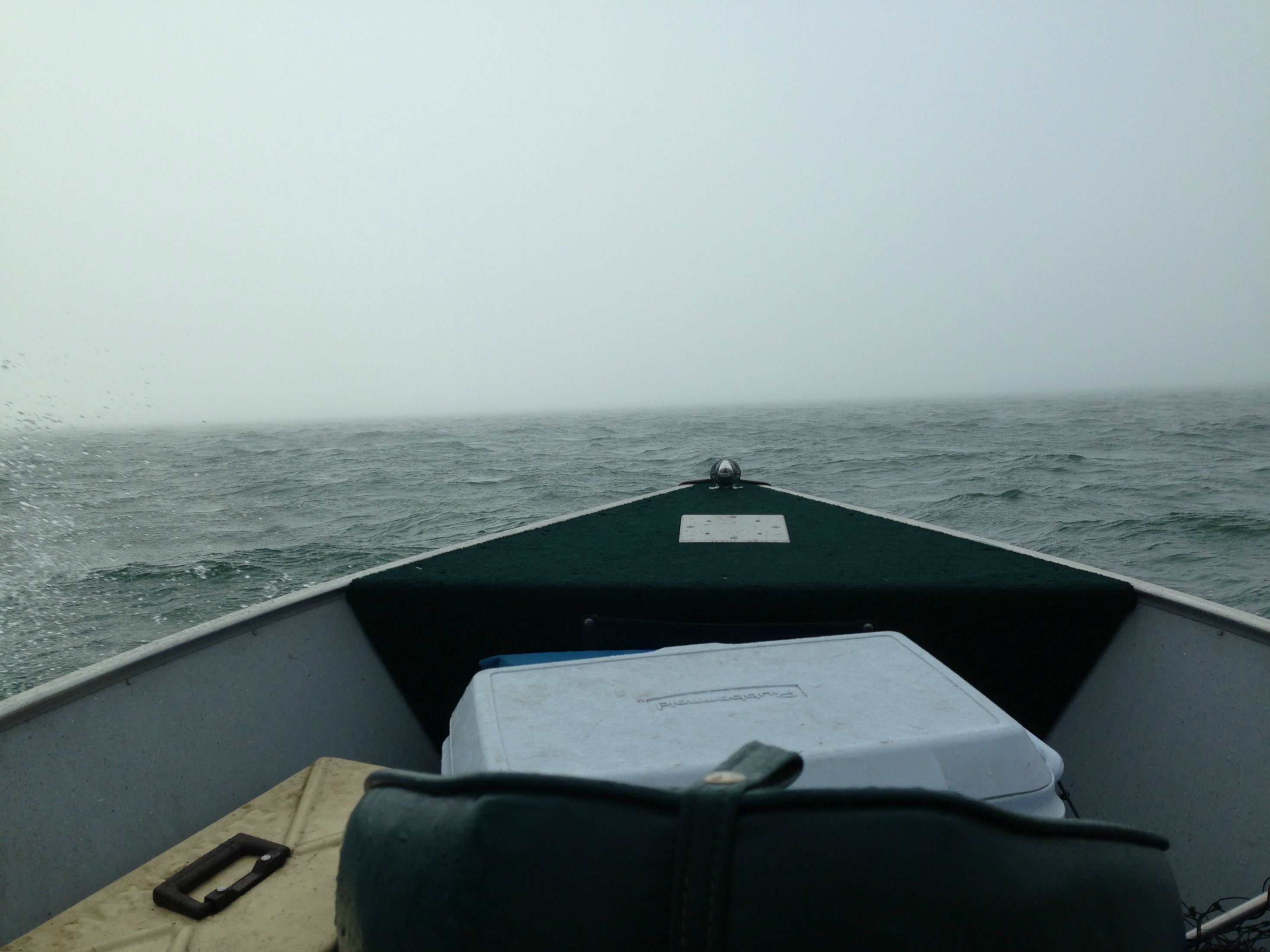 Ballardowie obserwowali nadciągającą mgłę do czasu, aż zostali przez nią wchłonięci. Widoczność bardzo zmalała (co widać na zdjęciach poniżej) i odczuwalnie obniżyła się temperatura. Do brzegu wrócili wyłącznie dzięki wskazaniom GPS.