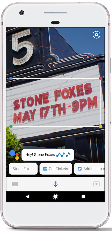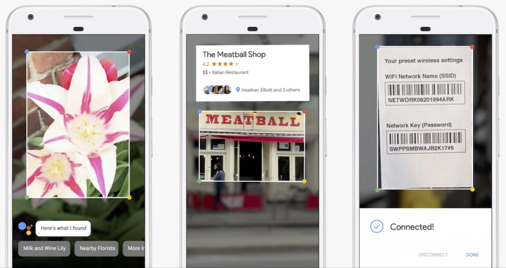 Podczas konferencji Google I/O szef korporacji, Sundar Pichai, zaprezentował jak działa połączenie wirtualnego asystenta (właściwie asystentki) z wbudowanym w telefon aparatem. Dzięki technologii Lens, która bazuje na uczeniu maszynowym, aplikacja Google Photos analizuje to co widzi i wyświetla powiązane z tym informacje.