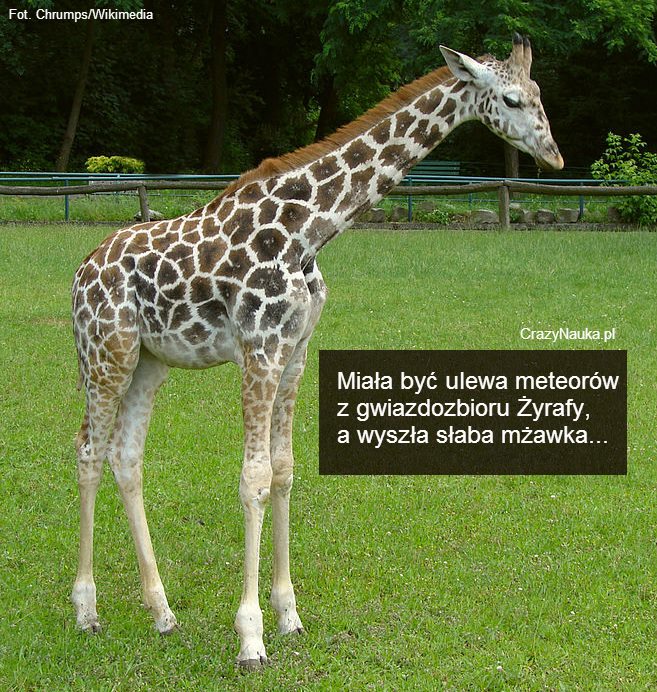 Co się stało z Kamelopardalidami? Miało być ich setki, ba – nawet 1000 na godzinę. Było… 5-10. Niestety, tak to bywa ze zjawiskami, które mają w sobie duży element losowości. Podobną porażką była kometa ISON, która nie przeżyła spotkania ze Słońcem. Porażki zdarzają się też zorzom polarnym. Pocieszać się tylko możemy, że to nie wina naszego pechowego położenia geograficznego – w Ameryce meteory były równie marne.