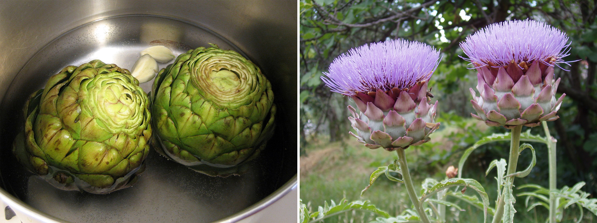 Karczochy to część kwiatów otoczonych liśćmi. Fot. Pepperedjane, artist in doing nothing