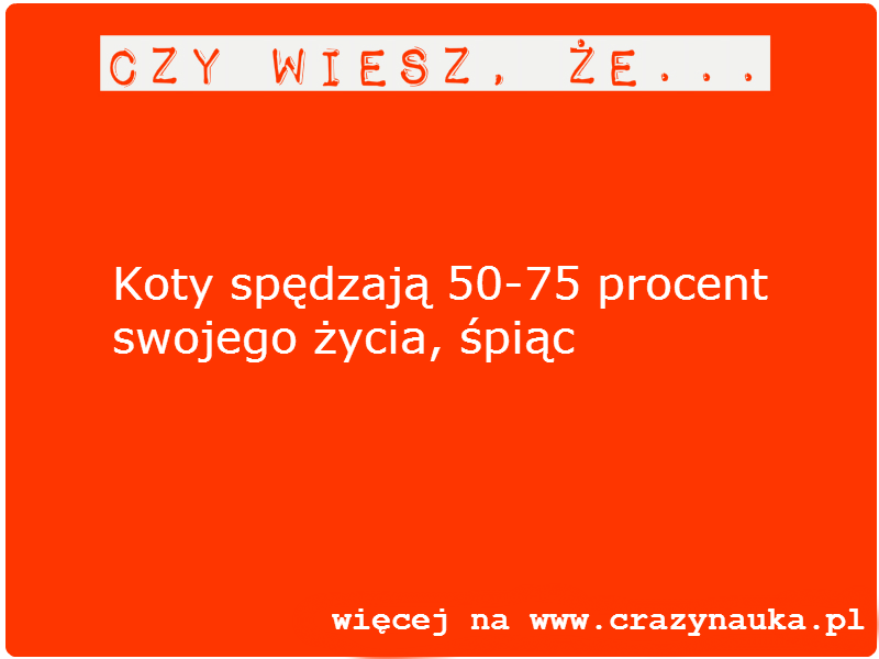 Czy wiesz, że koty spędzają 50-75 procent swojego życia, śpiąc Ciekawe? Podziel się z innymi Share on Facebook (Otwiera się w nowym oknie) Facebook Email a link to a friend (Otwiera się w nowym oknie) E-mail Share on X (Otwiera się w nowym oknie) X Drukuj (Otwiera się w nowym oknie) Drukuj Więcej Share on Reddit (Otwiera się w nowym oknie) Reddit Share on Pinterest (Otwiera się w nowym oknie) Pinterest Share on LinkedIn (Otwiera się w nowym oknie) LinkedIn Udostępnij na Tumblr (Otwiera się w nowym oknie) Tumblr Dodaj do ulubionych:Lubię Wczytywanie…