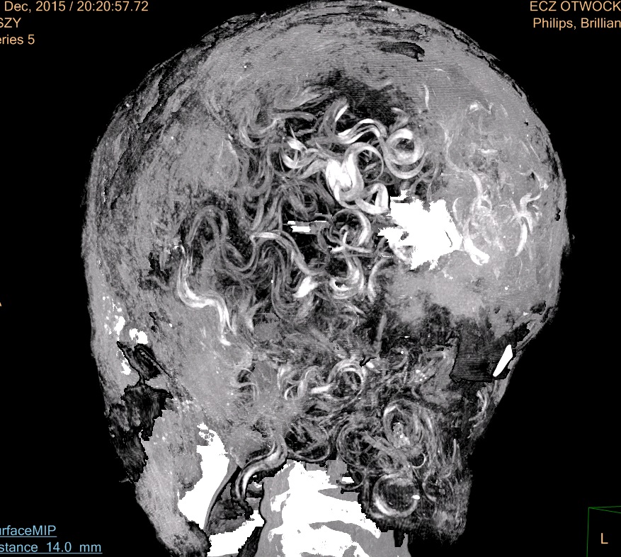 Tymczasem najnowsze badania tomograficzne i rentgenowskie pokazały, że okręcone bandażami zwłoki mają delikatną budowę, co wzbudziło czujność archeologów z Uniwersytetu Warszawskiego (UW), którzy badali mumię w ramach Warsaw Mummy Project – o tym projekcie pisaliśmy już u nas na blogu. Oprócz mumii kapłana analizom tomograficznym i RTG poddali też kilkadziesiąt innych mumii ze zbiorów UW, Muzeum Narodowego i muzeum w Luwrze (w tym m.in. mumie kota, krokodyla i barana). Użyli do tego celu tomografów komputerowych z Międzynarodowego Centrum Onkologii Affidea w Otwocku.