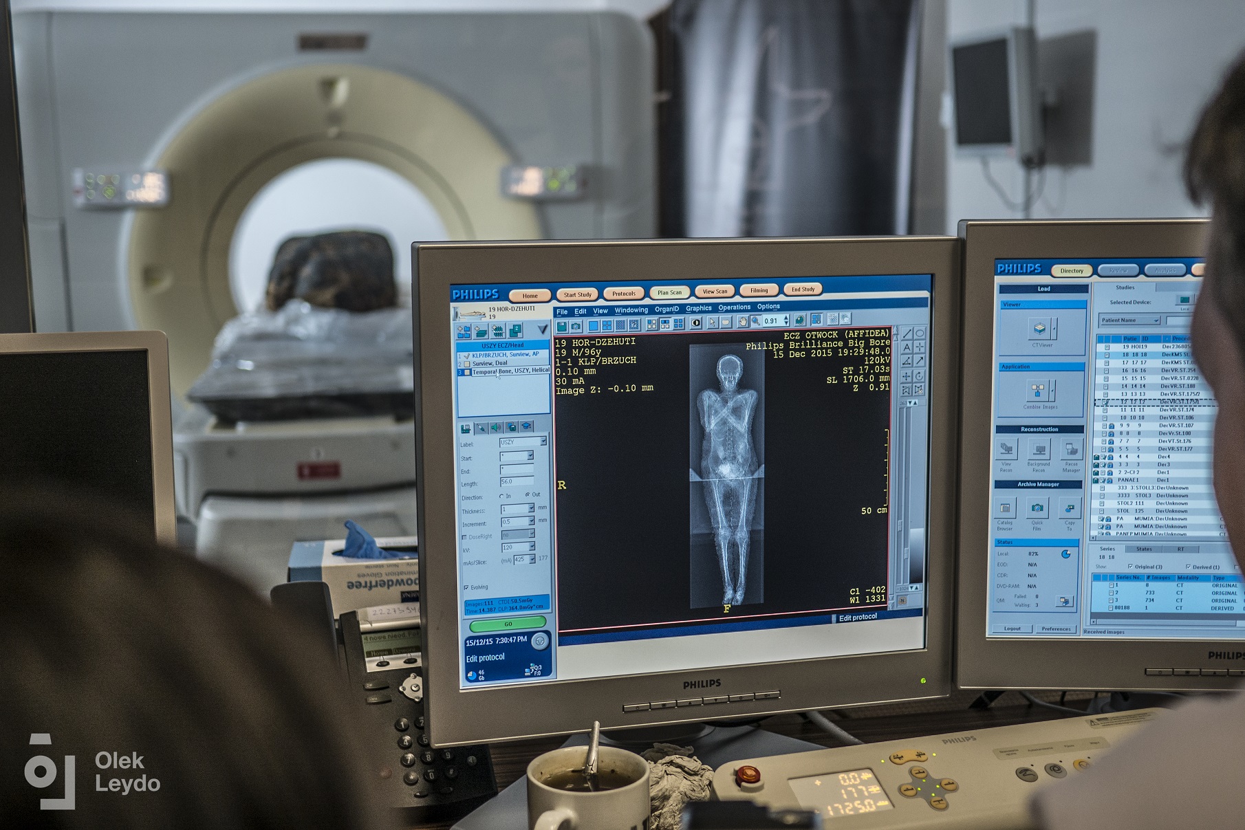 Mumia kapłana Hor-Dżehuti w rzeczywistości kryje zwłoki kobiety. Fot. dr Łukasz Kownacki (Affidea), Aleksander Leydo