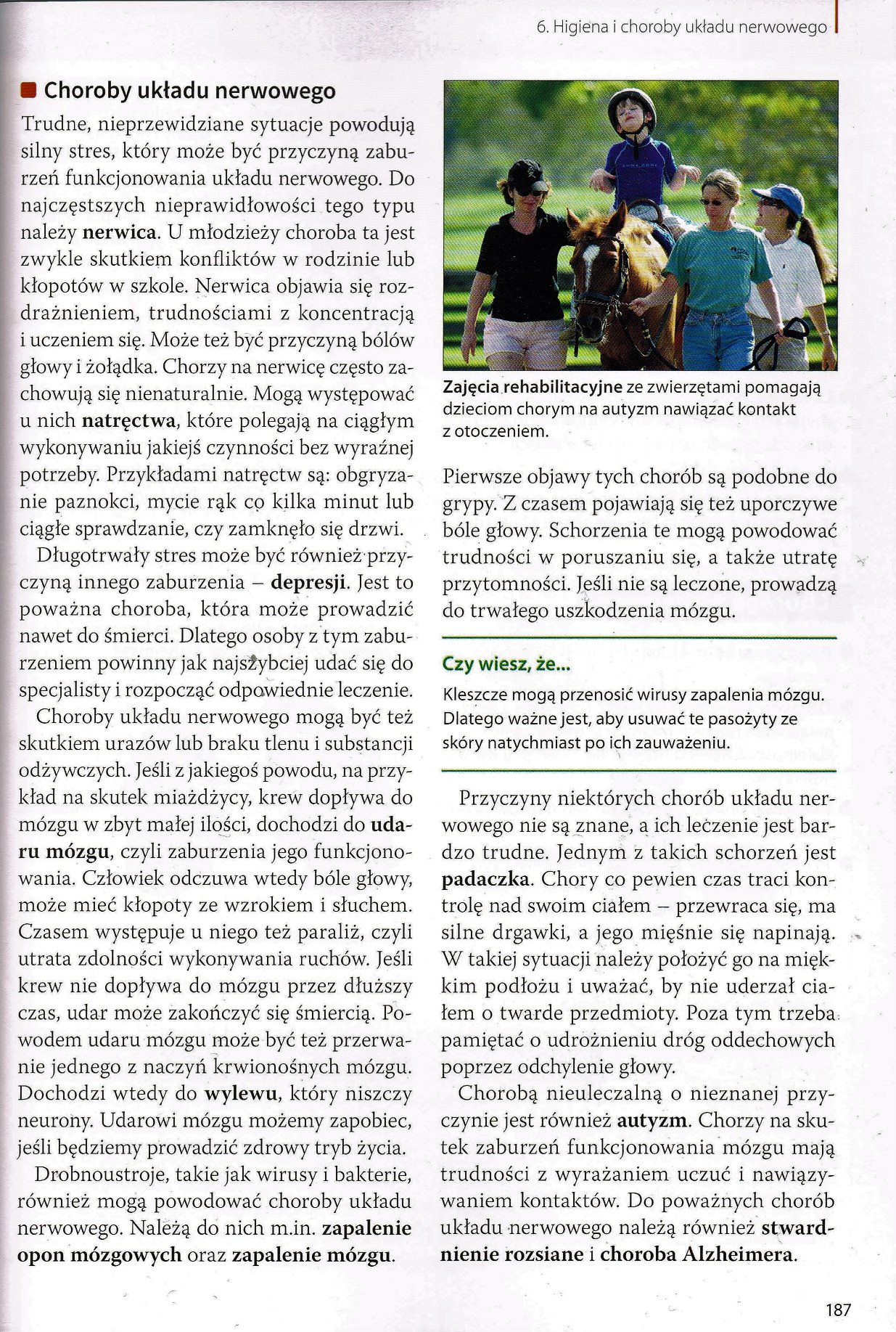 Tu można zobaczyć całą stronę z podręcznika, w którym temat autyzmu umieszczono w rozdziale “Choroby układu nerwowego”. Kliknij, by powiększyć stronę.