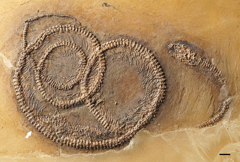 W 2008 roku także odkryto podobną skamieniałość– był to rekin, w którego wnętrzu znajdował się płaz, który wcześniej zjadł niewielką rybkę. Tym razem to wąż upolował niewielką iguanę, która wcześniej pożarła owada. Ciało węża zakonserwowało się w osadach jeziornych około 48 milionów lat temu.