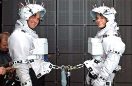 Tak powstawały sceny z "Grawitacji". George i Sandra ponoć żałowali, że film nie jest kręcony w kosmosie. Kostiumy aktorów oblepione zostały czujnika...