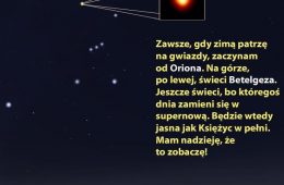 Betelgezę łatwo znaleźć. Wystarczy odnaleźć Oriona, którego widać na niebie przez całą zimę. 7 gwiazd ułożonych w kształt przypominający klepsydrę i wśród n...