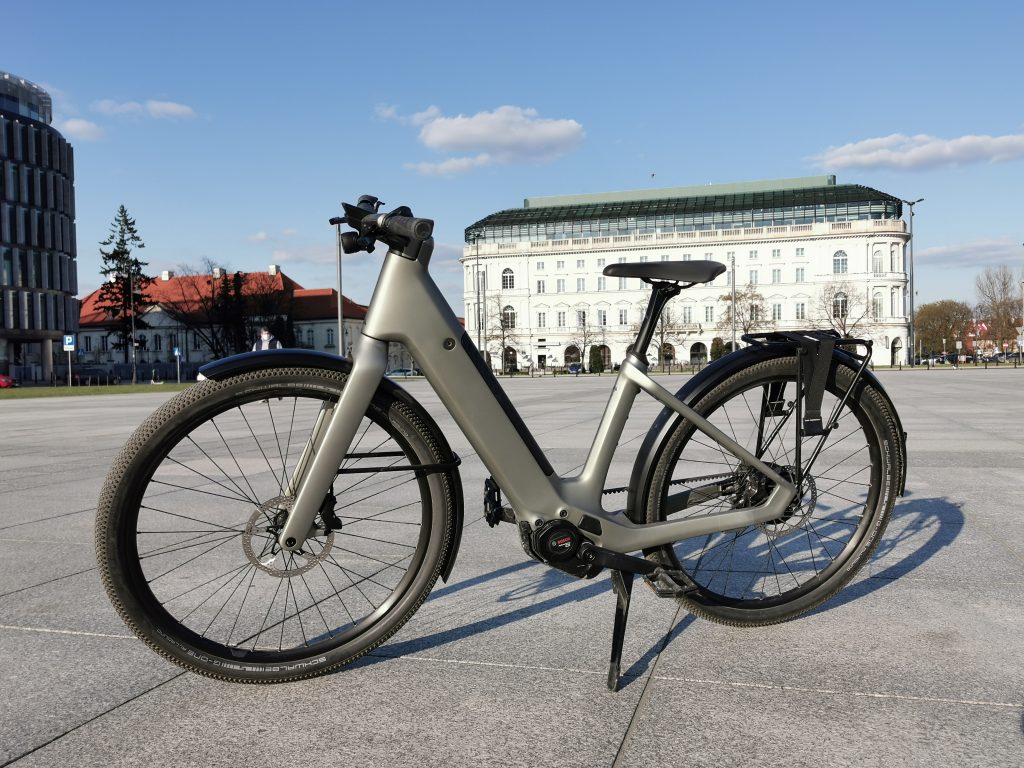 Precede:ON CF 9 ST to kompletnie wyposażony rower miejski. Bagażnik Ortilieb o nośności do 25 kg, błotniki, oświetlenie, a nawet nóżka zostały zgrabnie zintegrowane z ramą roweru. Jedyne, o czym można pomyśleć, to zakup sakw, które dzięki systemowi szybkiego mocowania łatwo dopniemy do bagażnika. Teraz wystarczy tylko naładować akumulator (50% w 3h, 100% w 7,5h) i jechać. Tu warto wspomnieć, że ładowarka jest stosunkowo mała i waży tylko 600 g, więc kiedy potrzeba bez problemu można ją zabrać z sobą. Jeśli ktoś chciałyby szybciej naładować baterię (np. do 100% w 3h) to będzie musiał zaopatrzyć się w tzw. szybką ładowarkę, która jest nieco większa i cięższa.