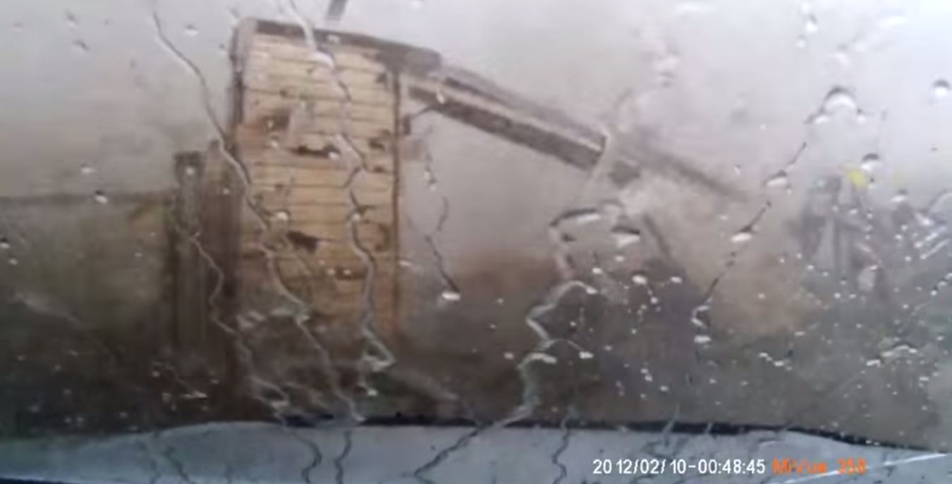 Ten film nakręcono kamerą samochodową 29 sierpnia 2014 roku (tak, data na filmie jest źle ustawiona) w Baszkirii. Tornado po prostu zdmuchnęło garaż.